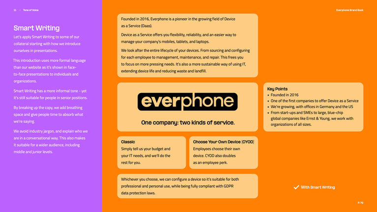 If content is king, then context is queen. My Tone of Voice guide for German telecoms company, Everphone, showed this.